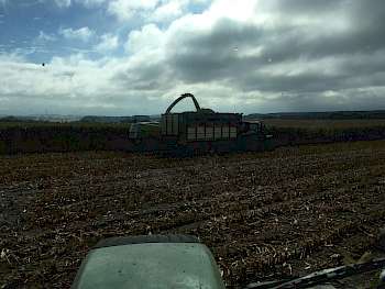 Nach der Shredlage ging es für mich auf einen anderen Jaguar 950 mit Orbis 750. Hier war ich für dann für Biogasanlagen unterwegs. Trotz trockenem Mais konnten wir die Maiskampagne zwar erschöpft, aber erfolgreich und ohne größere Schäden abschließen.