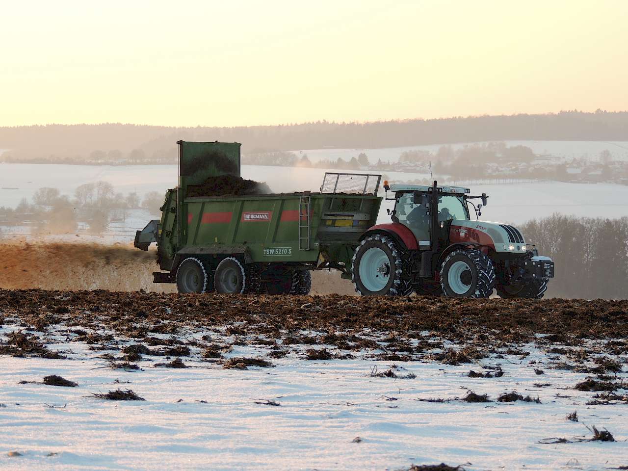 Je nach Wetterlage stehen ferner Gülle ausbringen und Mist streuen auf dem Plan sowie der Transport von Hackschnitzeln.
