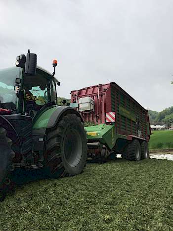In den letzten Wochen ging die Grasernte und auch die Maissaat mit grossen Schritten voran. Nebst der Quaderballen- und Rundballensilage wurden auch Hoch- und Fahrsilos gefüllt. In diesem Jahr teilte sich die Grasernte in mehrere Abschnitte, da das Wetter nicht beständig genug war. In den letzten Tagen konnten wir auch noch etwas Heu zu Rund und Quaderballen pressen. Es war aber auch hier Geduld gefragt, um das Futter genügend trocken zu bekommen.