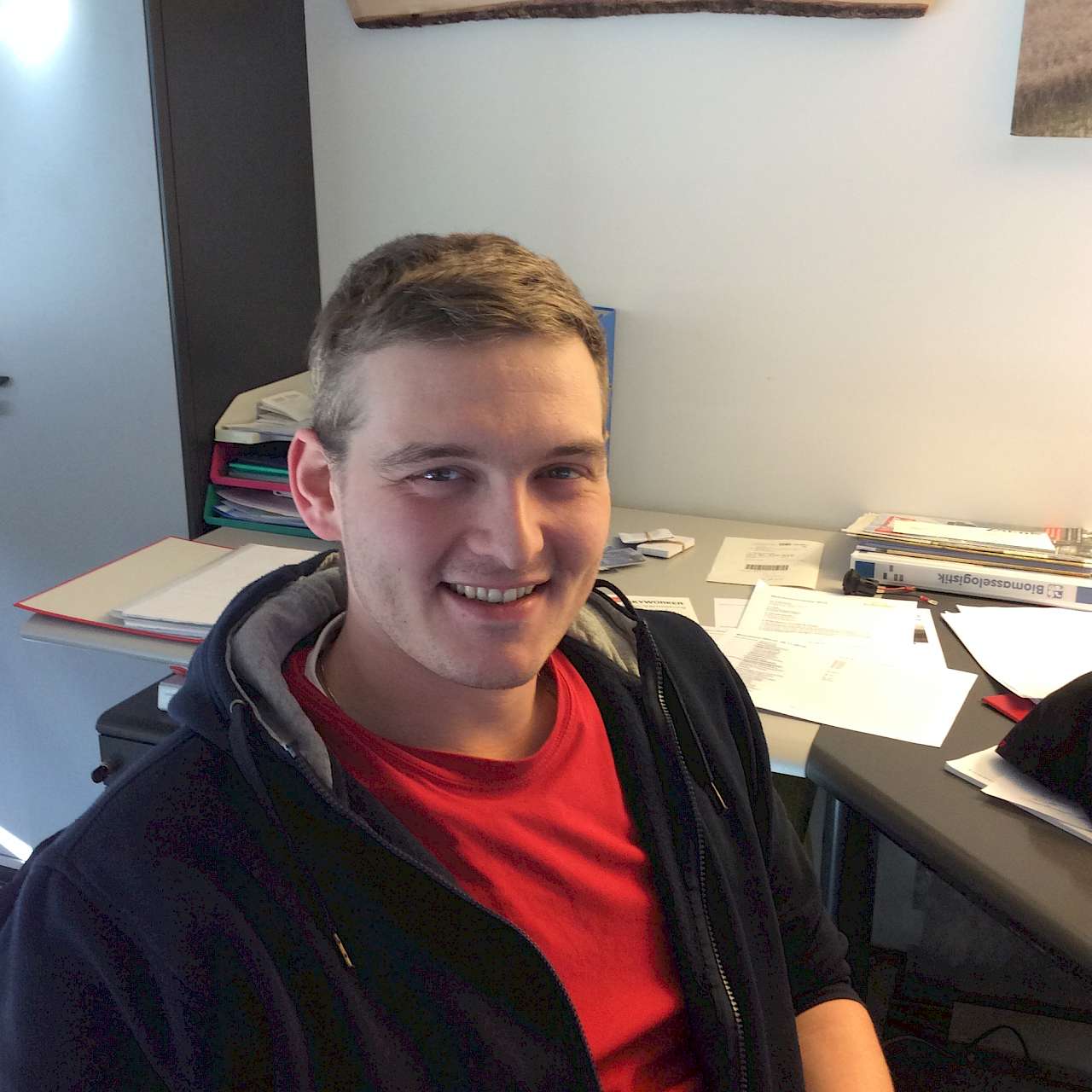 Pius Müller ist gelernter Landwirt und hat seine Weiterbildung zum Agrotechniker HF (höhere Fachschule für Agrarwirtschaft, wie es in der Schweiz genannt wird) absolviert. Er arbeite seit Juni 2015 bei Schneider Agrar-Service als Disponent. Zudem ist er bei Gelegenheit auch draußen auf den Maschinen anzutreffen. Im Moment absolviert er noch die Zulassung als Berufschauffeur (Berufskraftfahrer), um als Ferienablösung oder Spitzenbrecher auf den Lkw eingesetzt werden zu können.