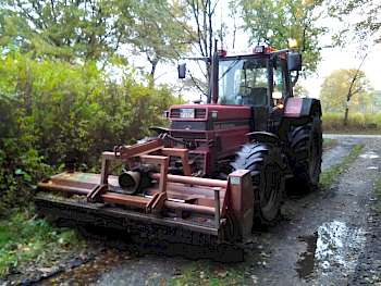 Unser Case 1455 Xl, der immer vor dem Spearhead Ausleger läuft, hat letzten Monat einen Pleuellagerschaden bekommen. Seitdem steht er leider in der Werkstatt. Wir mussten also umdisponieren und haben den Mulcher nun hinter den Deutz 150 MK3 angebaut.