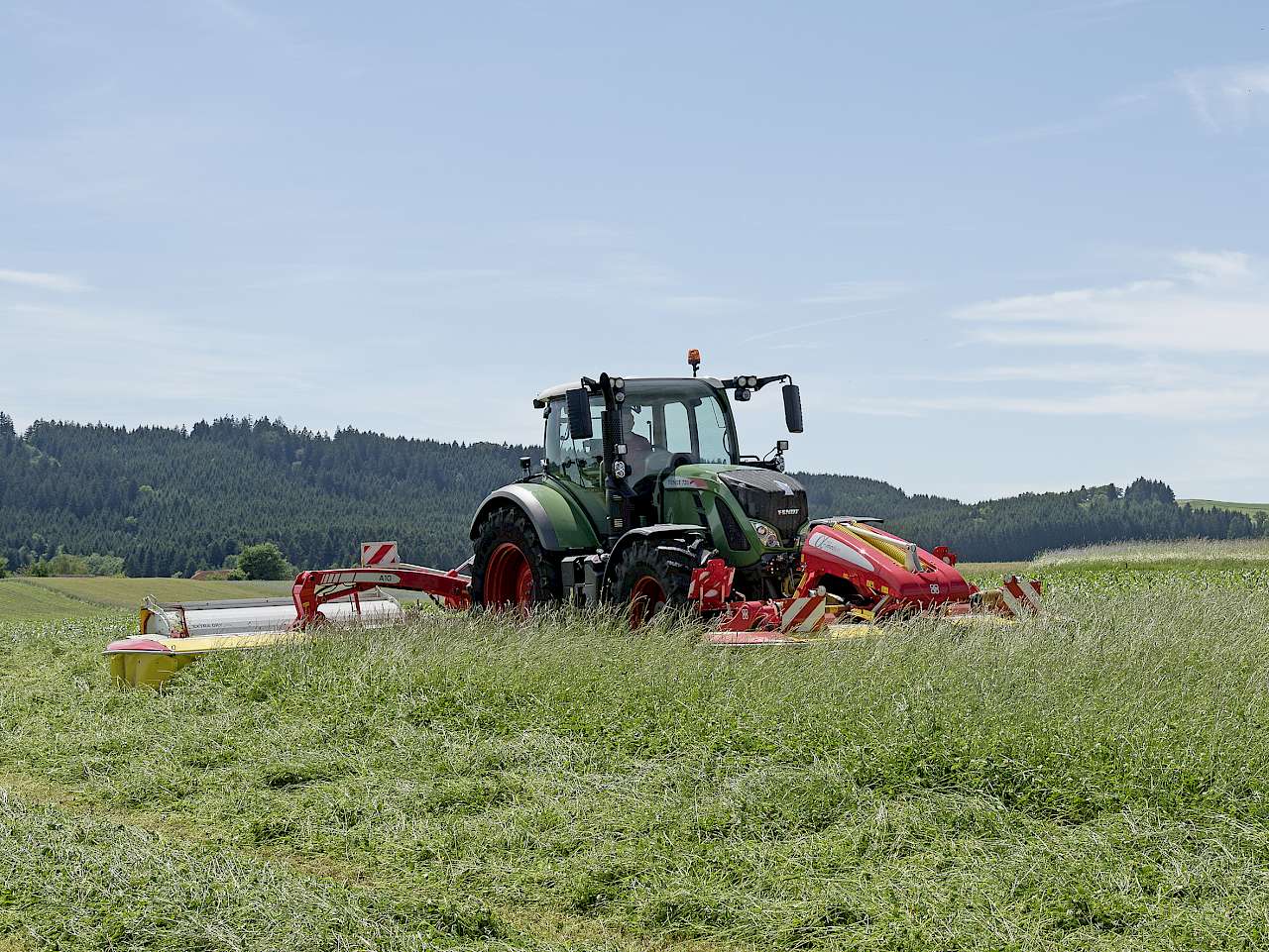Beim Novacut RCB sind beide Walzen angetrieben. Das sorgt laut Pöttinger für eine sichere Aufbereiterwirkung. Durch die Breitablage bei Heckeinheiten wird ein optimierter Trocknungsverlauf erzielt, welcher einen wesentlichen Beitrag zur besten Futterqualität liefern soll.