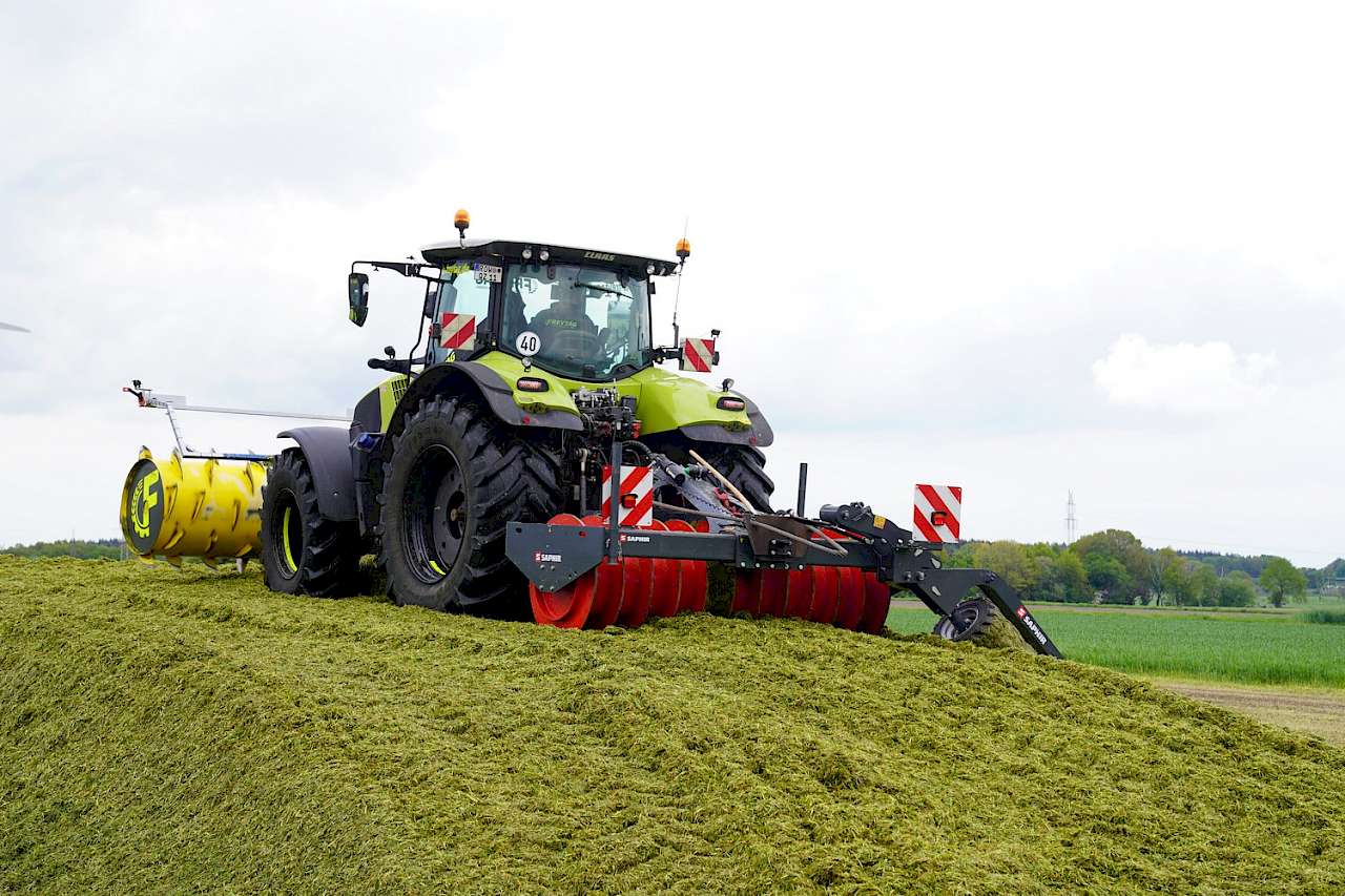 Die Grasernte hat begonnen. Die Wetterkapriolen haben zwar so manchen Zeitplan durcheinandergebracht, aber inzwischen wird gemäht, abgefahren und gewalzt. Letzteres ist auch der Job von Sascha Freytag. Mit seinem Claas-Schlepper sorgt er für eine gute Verdichtung und damit für Qualitätsfutter. Wir haben ihn besucht und ihm eine #LUHarvestAngels-Tasche vorbeigebracht.
