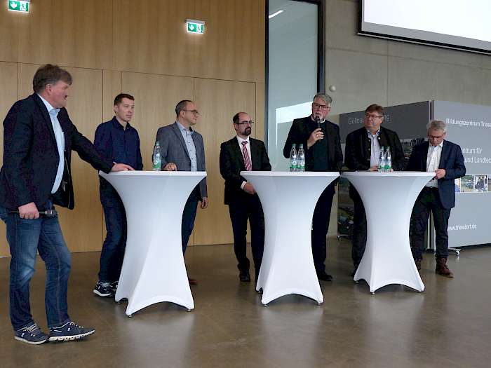Die Referenten am Vormittag stellten die aktuelle Situation auf dem Energiemarkt aus verschiedenen Blickwinkeln dar – sie vertraten Verbraucher, Erzeuger, Energieversorger und Planer. Nachmittags wurden Lebensmittelproduktion, Klimaschutz, Biodiversität und Energieproduktion auf der Fläche beleuchtet. Es wurden Zielkonflikte, Anpassungsoptionen und Konsequenzen sowie Einkommensrisiken für angepasste Fruchtfolgen vorgestellt und diskutiert.