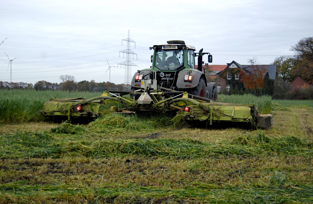 Um Aussaat und Bestandesführung kümmern sich die Biogasanlagenbetreiber in der Regel selbst. Eine neue Dienstleistung für diesen Kundenkreis ist die Ernte von Grünhafer als Ganzpflanzensilage. „Wir mähen den Hafer ins Schwad, lassen ihn etwa einen Tag liegen, nehmen ihn dann mit dem Feldhäcksler auf und transportieren ihn ins Fahrsilo“, erklärt Schmiemann.