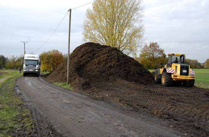 Kompost fährt Klaus Schmiemann im Auftrag der Remondis AG & Co. KG, ein international führendes Unternehmen der Wasser- und Kreislaufwirtschaft. Dieser wird in den Werken in Altenberge und Coesfeld aus dem kommunalen Grünschnitt und Bioabfall hergestellt. Remondis sammelt das Material und schreddert und siebt es mehrfach ab. Der Feinanteil wird in Containern kompostiert und ganzjährig vom Unternehmen Schmiemann zu verschiedenen landwirtschaftlichen Zielflächen transportiert und dort als Haufenmiete abgelegt. Im Anschluss wird der Kompost als Dünger ausgebracht, in der Regel ebenfalls durch das Lohnunternehmen Schmiemann.