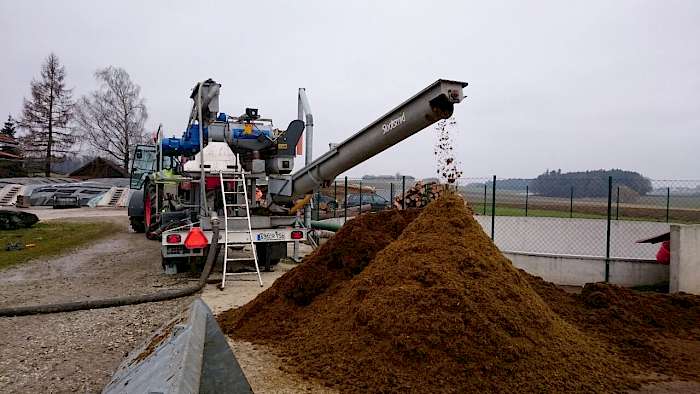 Im Januar 2015 startete schließlich in Halsbach die auf drei Monate angelegte Testphase. Die Handhabung der Technik bezeichnen die Hubers als gut und praxistauglich. Auch die Leistung mit 40 bis 50 m3/h sei in Ordnung, wobei hier der Zustand der Gülle schon deutlichen Einfluss habe. Biogasrestsubstrat erwies sich als die am effektivsten trennbare Masse, so die Erfahrung. Einfluss auf den Stundendurchsatz habe natürlich auch der gewünschte Trockensubstanzgehalt der separierten Feststoffe, den man an der Maschine einstellen könne. Unabdingbar war und ist für beide, mit Blick auf das schon erwähnte Strohproblem, auf jeden Fall ein vorgeschalteter Zerkleinerer. „Insgesamt konnten wir in den drei Testmonaten im Schnitt aller Kundenbetriebe das Volumen der Gülle um gut 20 % reduzieren, in der Spitze sogar um über 30 %“, fügt Huber jun. hinzu.