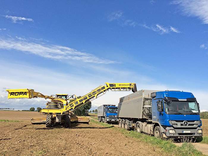 Für den Transport der Zuckerrüben setzt das Unternehmen insgesamt 28 Lkw mit rückwärts kippbaren Sattelaufliegern ein. Die Zugmaschinen laufen je nach jährlicher Kilometerleistung fünf bis sechs Jahre und damit länger als der Finanzierungs- bzw. Abschreibungszeitraum. Die Auflieger seien in der Regel sogar zwei Zugmaschinen-Generationen lang nutzbar, so sein Hinweis.